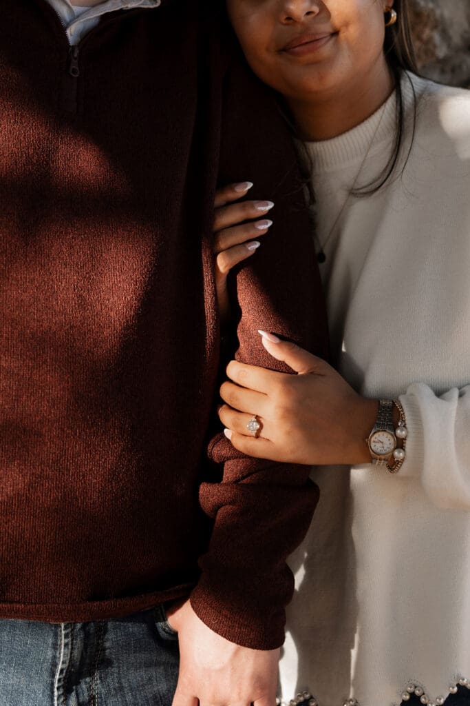 We captured playful sidewalk dances, quick kisses tucked into quiet corners, and cuddled-up lantern-lit moments as the evening light shifted. Even the ring shots sparkled perfectly in the soft, glowing light.