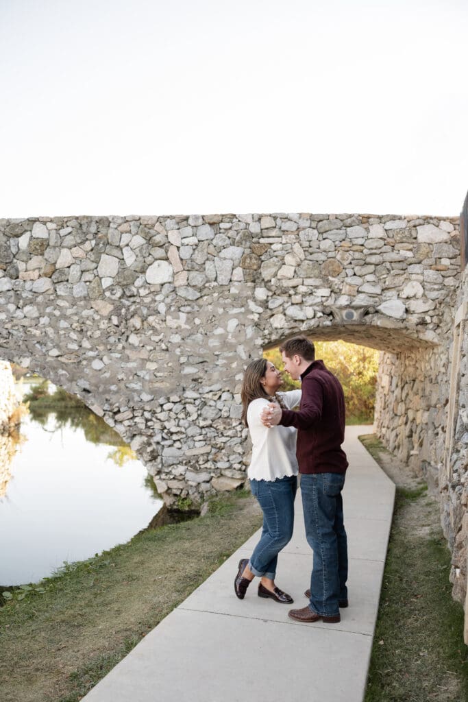 Adriatica Village is a dream for McKinney engagement photos. Romantic walkways along the canal, Tuscan-inspired details, rolling grassy hills, and a sparkling lake create endless photo opportunities. Stone archways, flower-covered columns, and warm European-style walls add texture and depth to every shot.